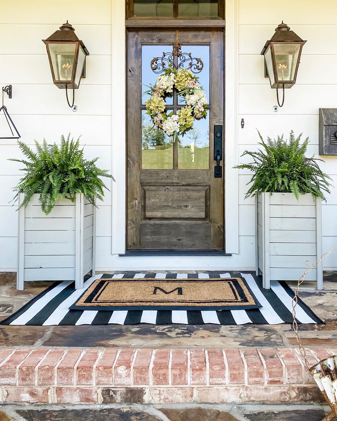 Great Farmhouse Exterior Design Ideas We have been enjoying these beautiful days at home! I am smitten over my box planters hubby & a friend built! I painted them Intellectual gray by Sherwin Williams. Our initial rug is…