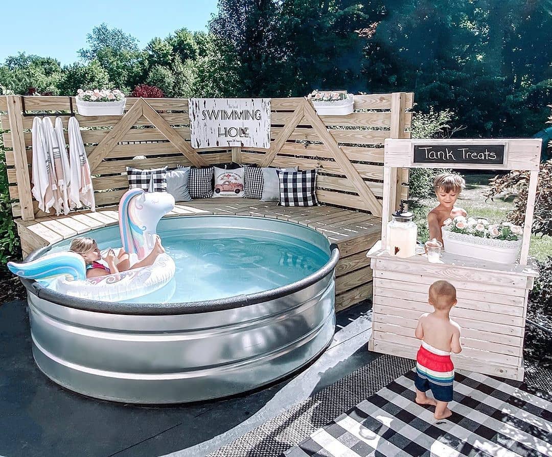 Fascinating Farmhouse Style Design Ideas A gorgeous stock tank pool AND treats? 😍 Okay this setup just keeps getting cuter! 🙌❤️ Would you love this in your backyard? 🙋🏡 TAG a friend who needs to get a stock…