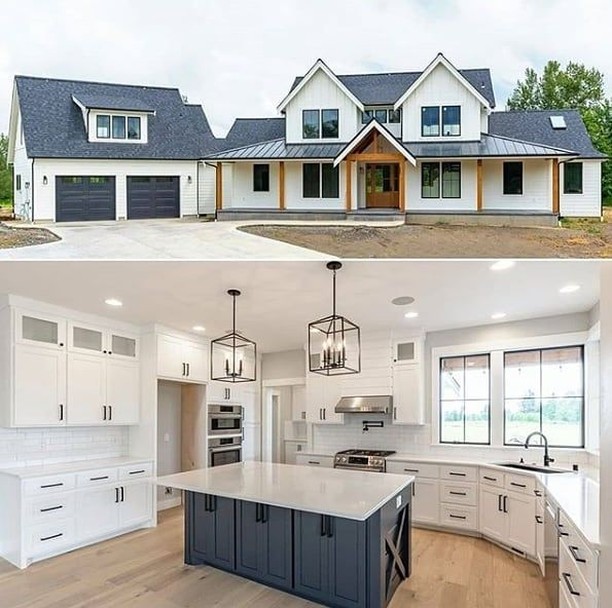 Awesome Farmhouse Style Design Ideas How BEAUTIFUL is this farmhouse build? 🙌❤️ Would you love to have a house like this? TAG a friend who would move in here! 😍👇 (@pacificedgebuilders)⠀⠀ –⠀⠀ Follow our other page @countryhomes.charm for…